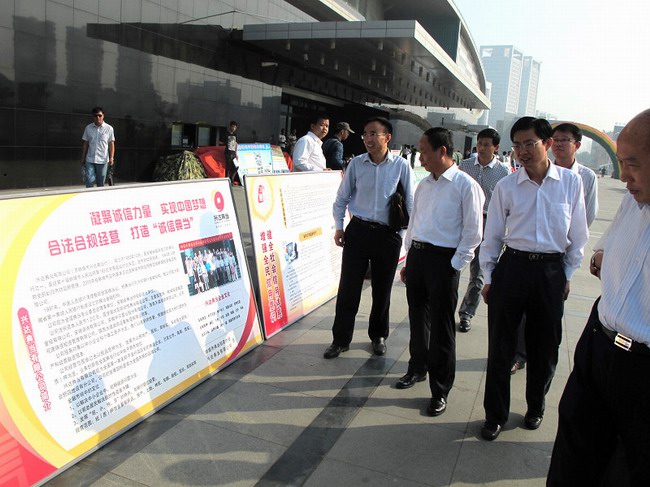 10月12日上午,在淮河文化廣場(chǎng)上,興達(dá)典當(dāng)有限公司作為蚌埠市典當(dāng)拍賣協(xié)會(huì)會(huì)長單位應(yīng)邀參加了由市商務(wù)局牽頭,聯(lián)合市委宣傳部、市文明辦、市物價(jià)局、市經(jīng)信委等17個(gè)部門共同舉辦的以“凝聚誠信力量,實(shí)現(xiàn)中國夢(mèng)想”為主題的誠信興商大型宣傳活動(dòng),市人大、市政協(xié)及市商務(wù)局領(lǐng)導(dǎo)現(xiàn)場(chǎng)巡視了各單位宣傳展板并與在場(chǎng)人員熱烈交流。