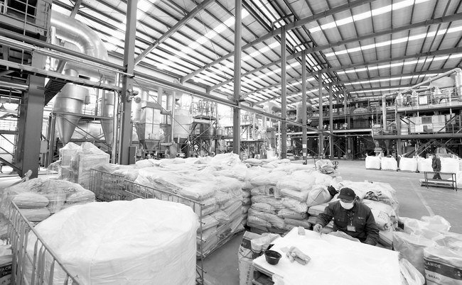 12月16日,安徽天潤化工員工在生產(chǎn)線上精心作業(yè)。今年以來,該企業(yè)積極參與國際市場競爭,產(chǎn)品遠(yuǎn)銷30多個國家和地區(qū)。今年以來,該企業(yè)出口總值再創(chuàng)新高,聚丙烯酰胺產(chǎn)品出口 9100噸,比去年增長48%,創(chuàng)匯1000多萬美元。