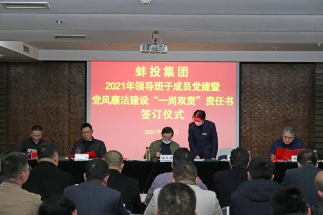 會議總結了蚌投集團2020年度工作完成情況,部署了2021年度重點工作。中創(chuàng)發(fā)展、能源集團、擔保集團、蚌發(fā)公司、項目管理5家子公司負責人分別進行2020年度述職述責述廉。會議部署了2021年度集團黨建暨黨風廉潔建設工作,啟動了新一輪深化“三個以案”警示教育。汪支邊同志與集團黨委班子成員簽訂2021年度“一崗雙責”責任書,并與子公司代表簽訂2021年度黨建暨黨風廉潔建設、經(jīng)營目標、安全生產(chǎn)、環(huán)境保護、平安建設(綜治工作)目標責任書。