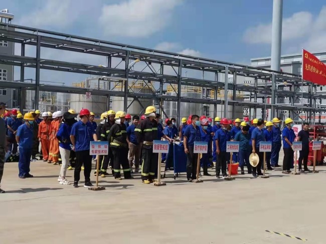 為檢驗(yàn)《天潤化工生產(chǎn)安全事故綜合應(yīng)急預(yù)案》在新廠區(qū)的可行性,7月22日上午,天潤公司在新廠區(qū)重大危險源1#丙烯腈罐區(qū)進(jìn)行了綜合應(yīng)急演練。公司黨委書記、總經(jīng)理劉彭城任現(xiàn)場演練總指揮,黨委經(jīng)營班子成員、中層管理人員、安全管理人員及相關(guān)部門應(yīng)急救援組成員等70余人參與演練。